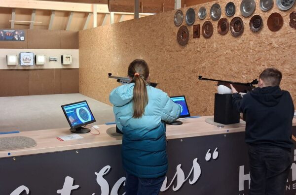 Bei den Bogenschützen traten zunächst unsre drei Jugendlichen am „Niko‑Monsterlein“ (3‑D‑Ziel) an und schossen anschließend mit dem Lichtgewehr ihre Ringe aus. Leo und Jacky teilten sich punktgleich die Spitzenplätze, Emilia erreichte Platz drei. Alle erhielten einen süßen Preis, und Jacky Lührmann wurde zudem nachträglich als Jugendvereinsmeisterin im Bogenschießen mit dem Wanderpokal geehrt.