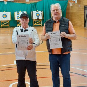 Alfred Paul, Compound-Schütze, trat für unseren Verein am 20.10.24 in Eschau an. Durch seine langjährige Bogenerfahrung belegte er den 1. Platz mit insgesamt 501 Ringen, den Günther Gaus von der SG Großostheim mit 497 Ringen, 2. Platz, sicher auch gerne eingenommen hätte :-).