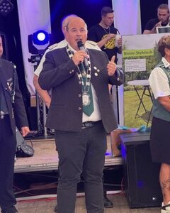 Um 17 Uhr hieß es Antreten in Schützenanzug und die Damen gerne im Dirndl. Die feierliche Eröffnung und Begrüßung der Nachbarvereine rundeten den Abend ab. Unser Michael hob die Partnerschaft noch einmal hervor und brachte der überraschten Menge unser Geschenk mit: Zusammen mit uns zwei Stufen der Engelsstaffeln. Ich freue mich schon auf die Einweihung selbiger.