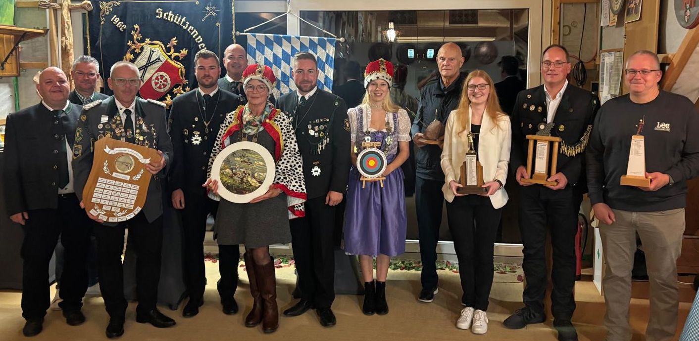 Die aktiven Bogenschützen sicherten sich Ehrennadeln für eine erfolgreiche Bogenwettkampfsaison. Eicheln erhielten weitere aktive Luftgewehr- und Pistolenschützen. Unsere letztjährigen Würdenträger bekamen Anstecknadeln zur Erinnerung. Bei der Tombola wurden über 30 Preise verlost. Danach war die Tanzfläche eröffnet und die Anwesenden konnten ausgelassen bis in die Morgenstunden feiern.