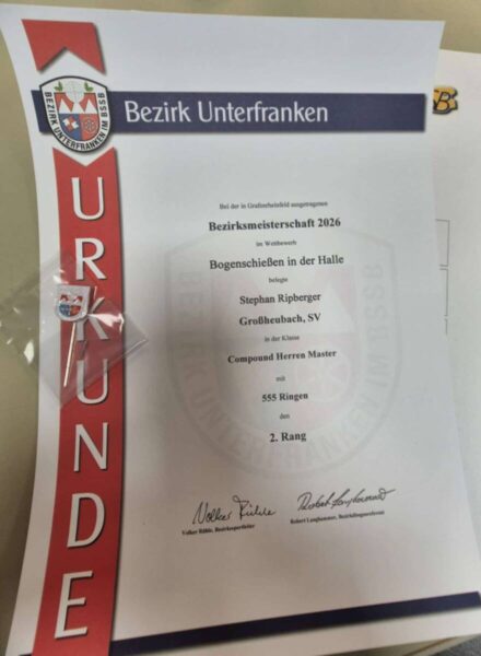 Am 06.02.2025 gingen in Grafenrheinfeld Bogenschützen aus 7 Schützengauen des Bezirks Unterfranken an den Start – Stephan in der Klasse Compound Herren Master.