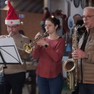 Viele Mitglieder folgten auch in diesem Jahr der Einladung zum Nikolausschießen. Nach einem herzhaften Chili con Carne sorgten Sarah, Matthias und Martin als Bläsercombo mit Adventsliedern für eine stimmungsvolle Eröffnung.
